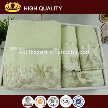 100% cotone colore moda solido alto qaulity pizzo telo da bagno set